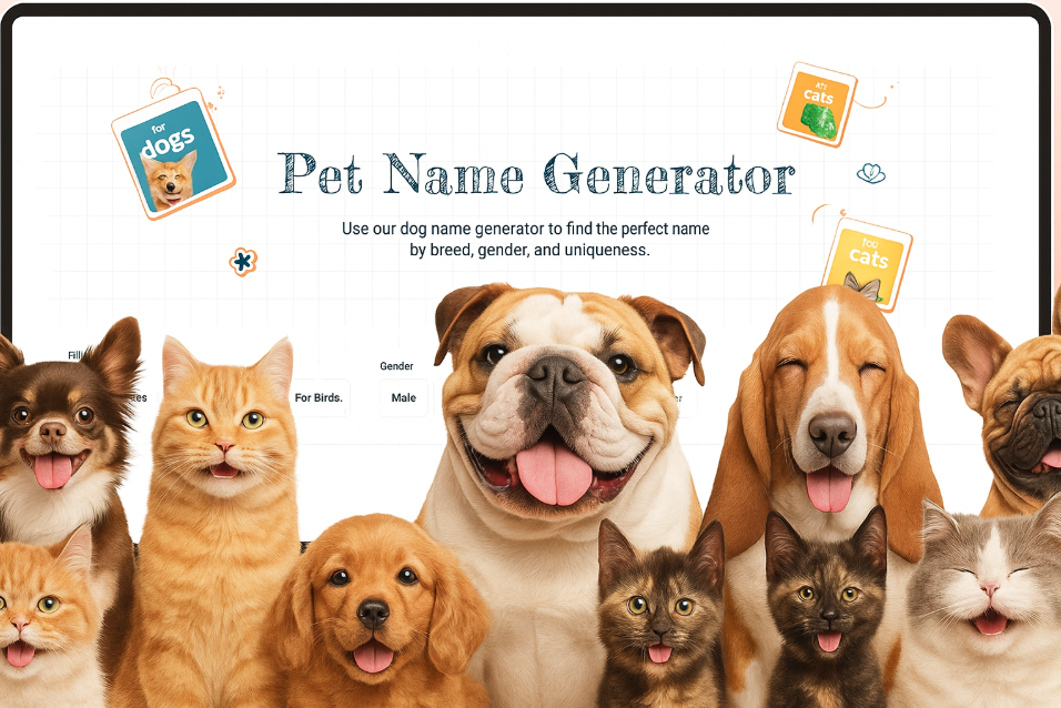 Find perfect pet names instantly with our Random Pet Name Generator — unique, cute, AI-powered, and fun tool for every pet lover
