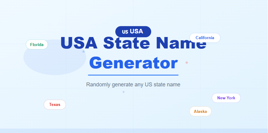 Discover the USA State Name Generator for realistic and unique U.S. state names.Create fun and random names for games, projects, or stories in seconds.