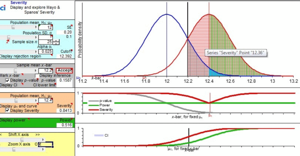 The Severity Calculator computes how well the data challenge or support a given hypothesis, ensuring that conclusions are both valid and severely tested.